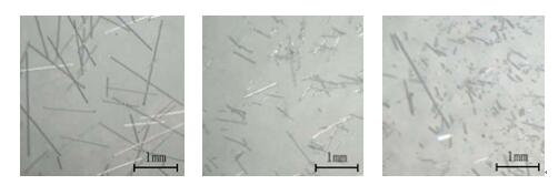 表1 玻纤长度及分布对隔热条性能的影响